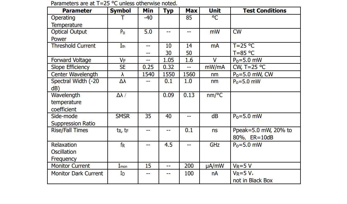 The DFB-1550-T5-6-2.5-W-A-A of Multi-Quantum Well (MQW) Distributed Feedback (DFB) lasers are well suited for low-cost high-speed transmitters.