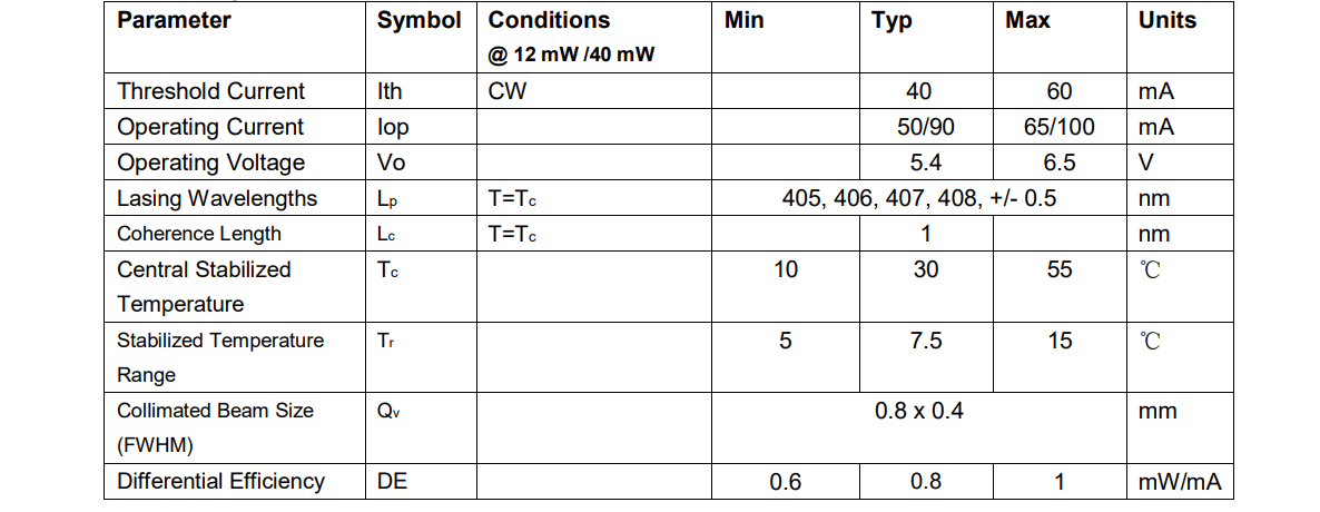 405nm 40mW Wavelength Stabilized Laser