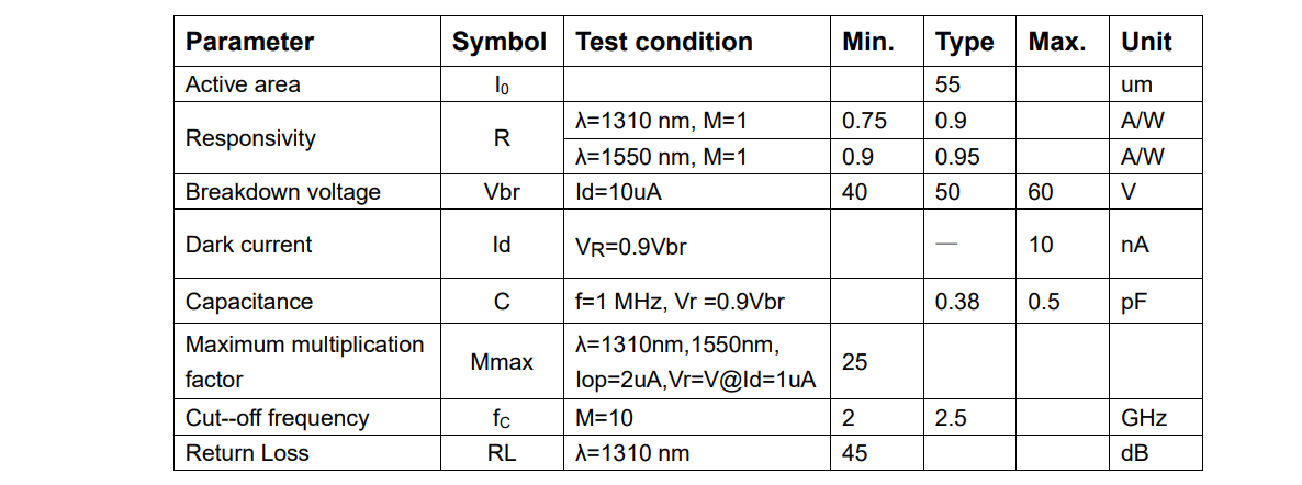 ➢ OTDR photodetector